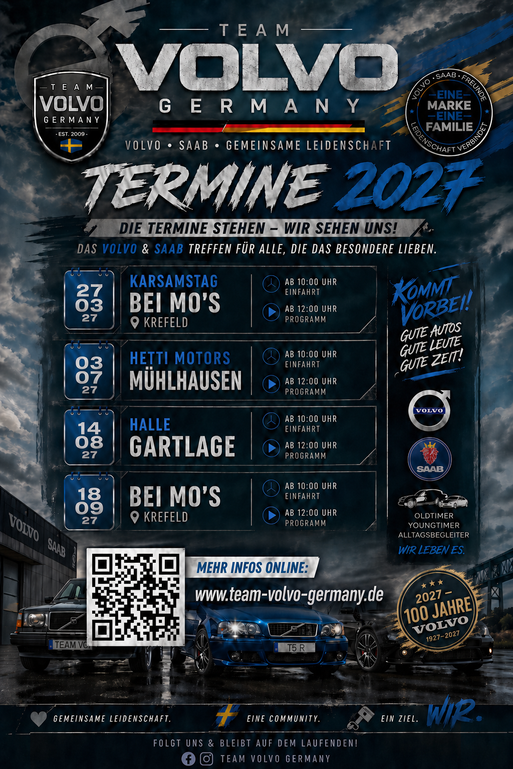 Der Startschuss für unsere Treffenserie fällt mit dem Carsamstag am 27.März 2027 bei Mo's in Krefeld. Bereiten Sie sich auf einen Tag voller spannender Fahrzeuge, interessanter Gespräche und einer entspannten Atmosphäre vor. Dies ist die perfekte Gelegenheit, um sich mit Gleichgesinnten auszutauschen und die Vielfalt der Volvo- und Saab-Modelle zu bewundern. Seien Sie von Anfang an dabei und erleben Sie den Auftakt eines großartigen Jahres!